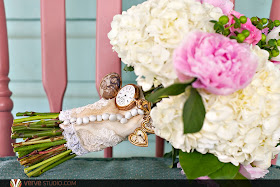 This bouquet is adorned with lace from the bride's mommy's dress and family heirlooms. So beauiful and sweet, and sensitive.